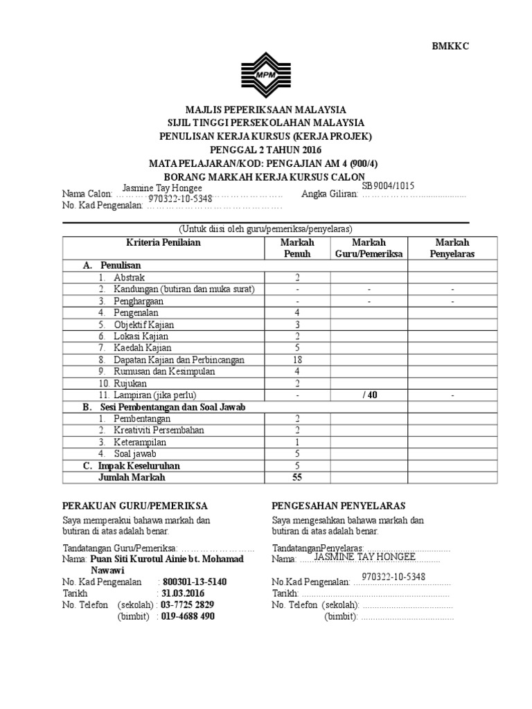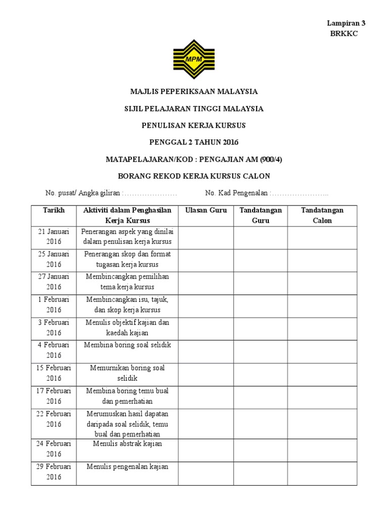Doc Majlis Peperiksaan Malaysia Sijil Tinggi Persekolahan Malaysia Penulisan Kerja Kursus Penggal 2 Tahun 2016 Mata Pelajaran Kod Pengajian Am 4 900 4 Majlis Peperiksaan Malaysia Sijil Tinggi Persekolahan Malaysia San Putera Academia Edu